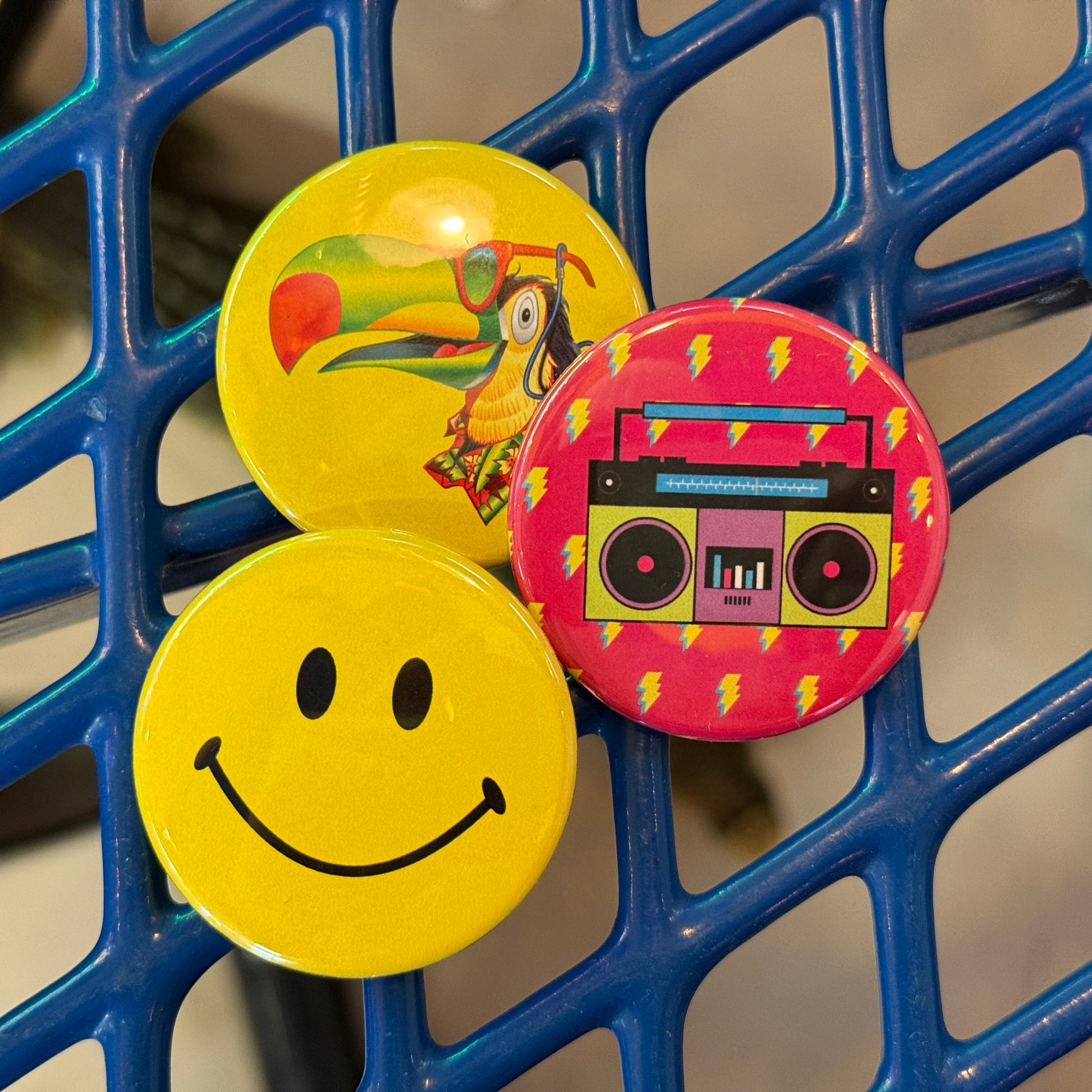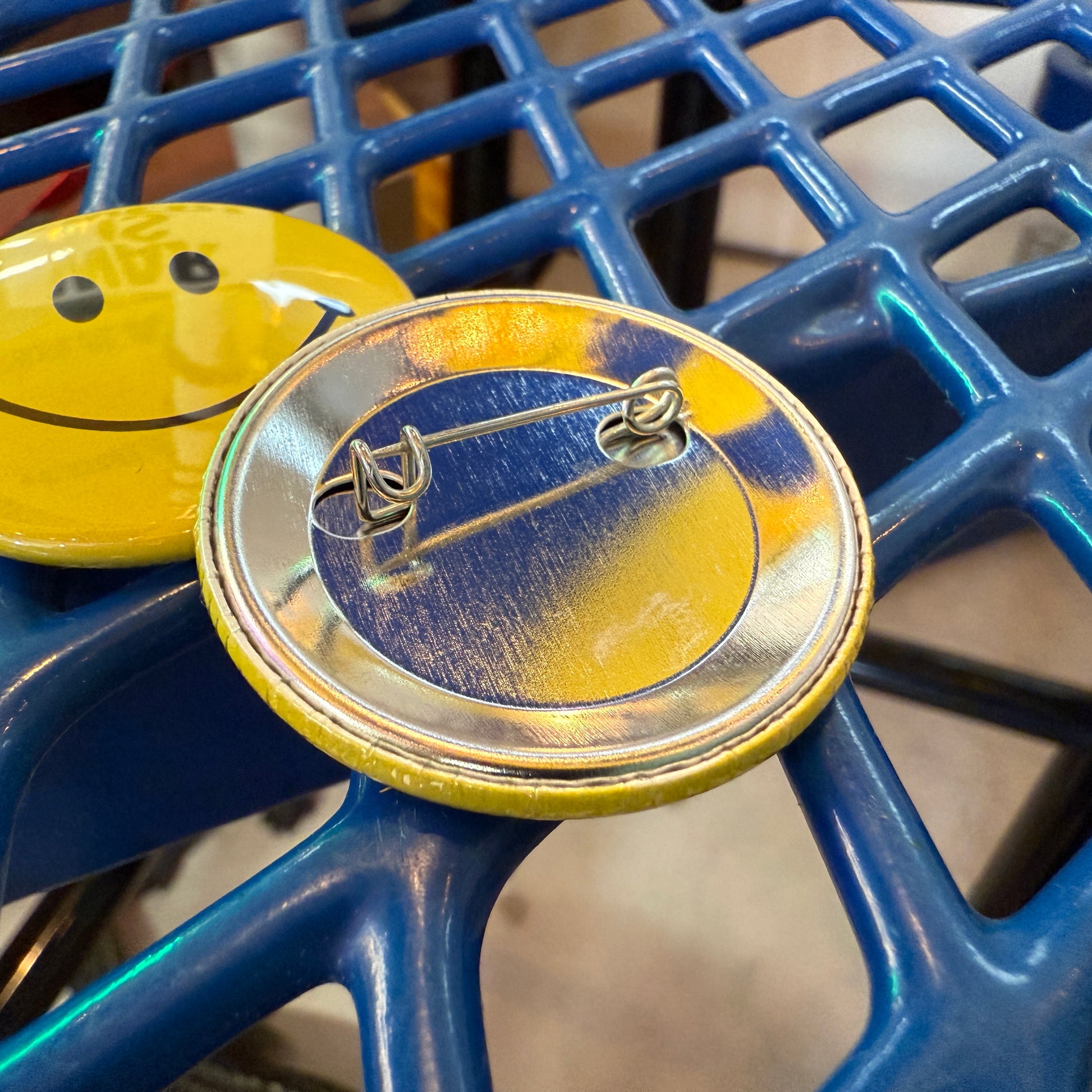 - Size: 1.75 inch (44mm) diameter round pinback button